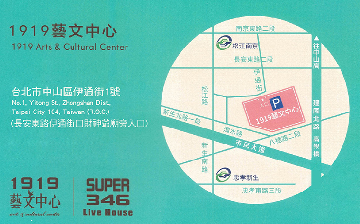 地點:台北市中山區伊通街1號(1919藝文中心 347廳)