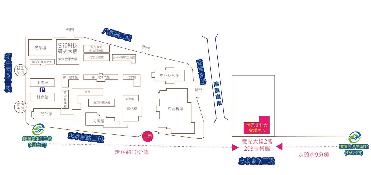忠孝新生捷運站(4號出口),出來往左沿北科大外圍人行道直走約10分鐘