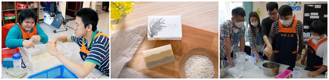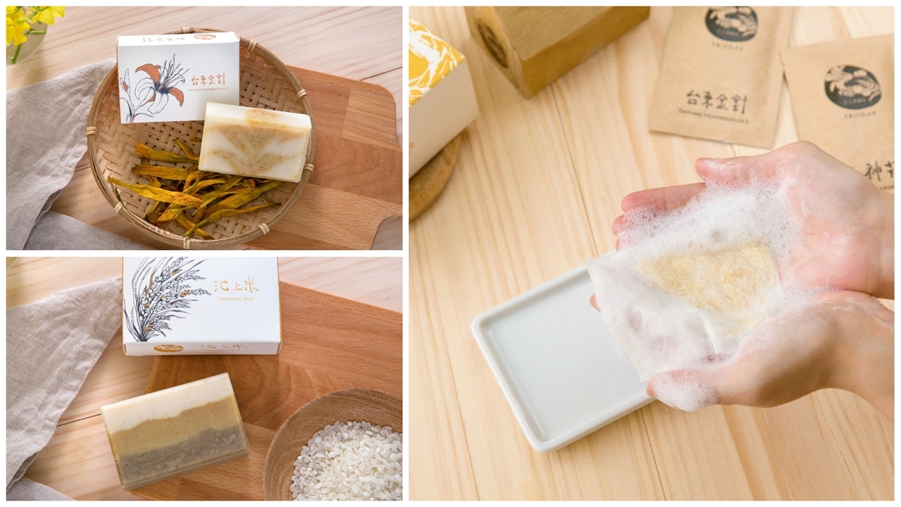 在這樣的契機之下,三三吾鄉夥同在地小農,透過專精技術研發地方特色單品手工皂款,並將技術完整培訓給社福團體進行生產,讓他們有穩定的工作,同時,也培養出專精的手藝。