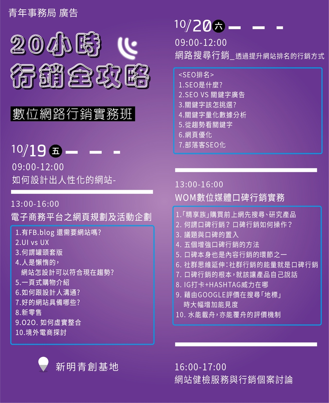 三天課程中,還有機會讓老師和你做一對一的網站健檢,給出最專業的行銷建議,千萬別錯過這麼棒的交流機會囉!