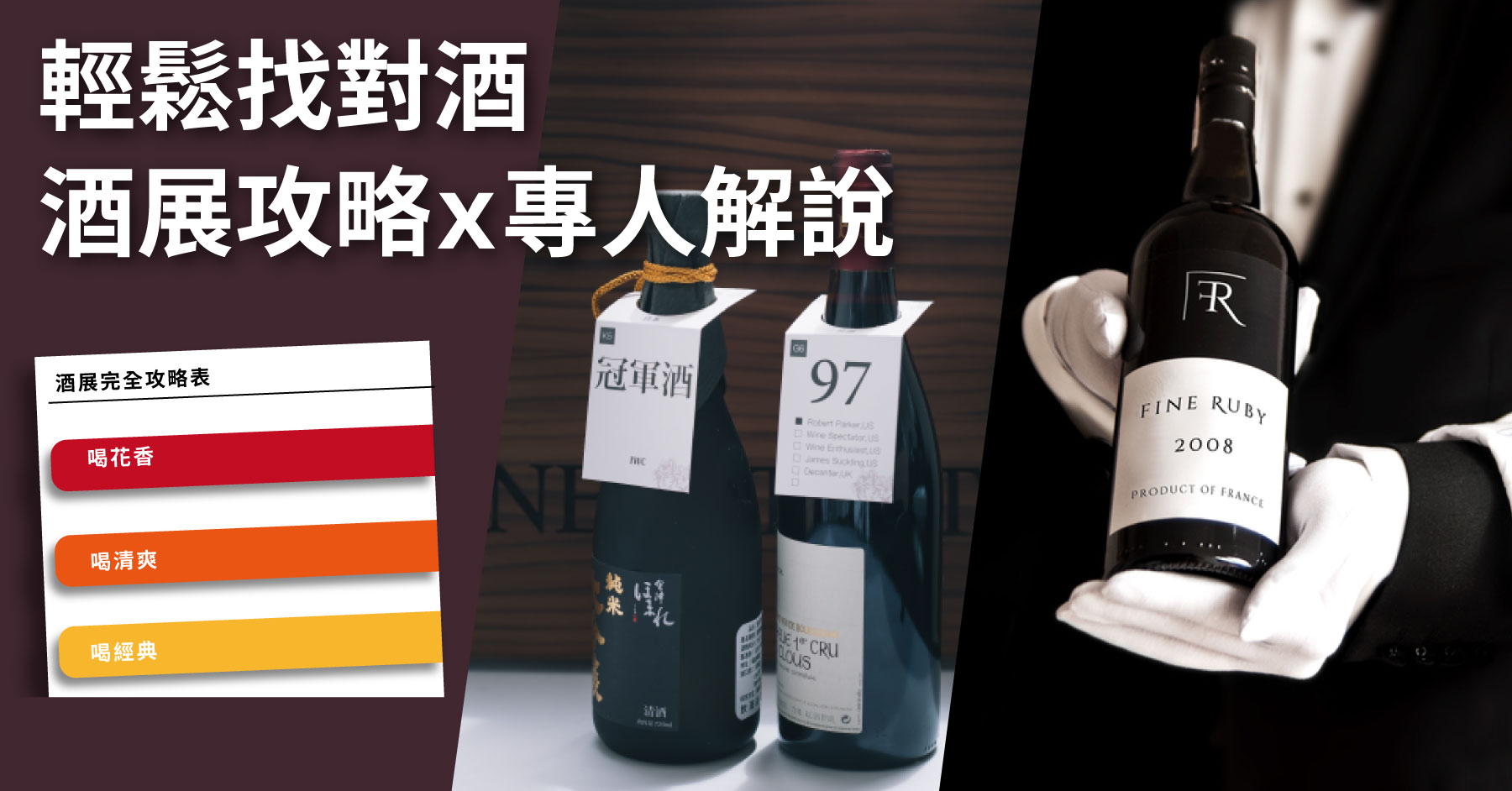 想參加酒展,又擔心喝不懂,或不知道該從何喝起?本次酒展,每個攤位都會有專人為您介紹酒款;我們也會準備「酒展攻略」,讓您依照自己喜歡的風味,輕鬆找到最對味的美酒。