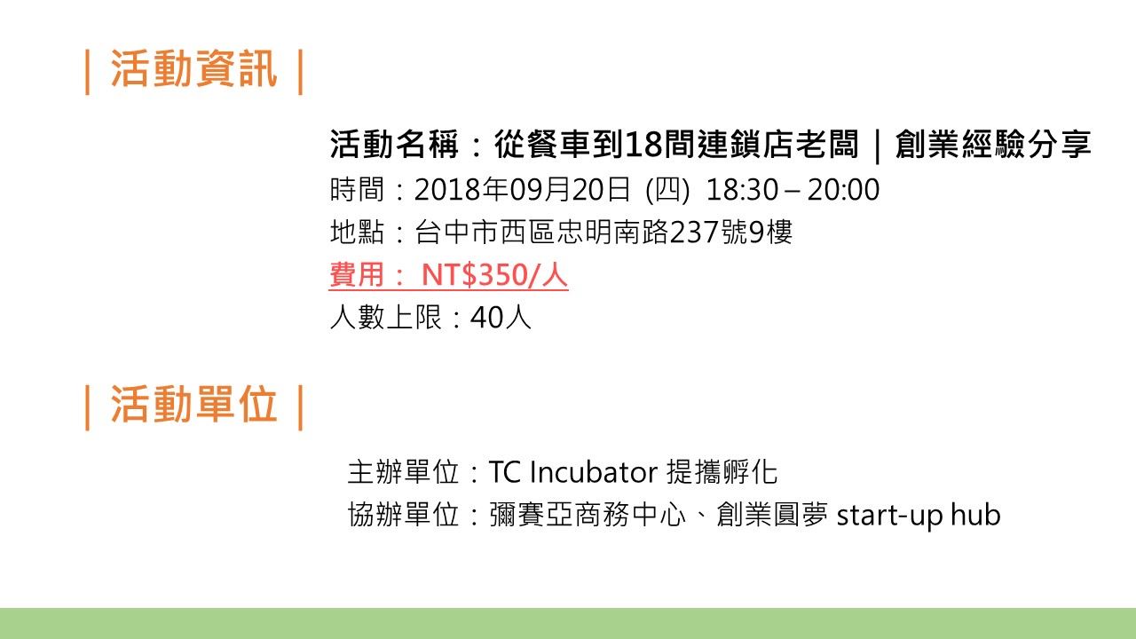 了解更多 歡迎追蹤TC Incubator粉絲專頁
