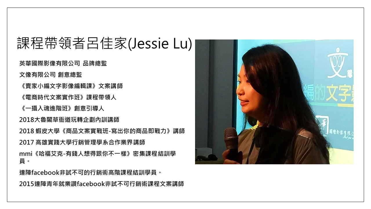 電商時代文案實作班全新回歸,更名為電商時代文案必修課,秉持著希望課程越來越精緻,也為自己想給的東西越來越多,因此將原有的課程拆解成一階及二階,讓課程更細緻,也更實用!一階課程為基礎觀念,二階才會開始進入實作,要上過一階的同學才能報名二階喲!