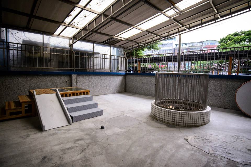 室內遊戲室 多雨的臺灣有著海島型的氣候, 下雨時狗兒們的Free run場地就由室外換到室內。 魔鬼藏在細節裡!遊戲室的溜滑梯使用多種異材質製作, 讓狗狗們在玩樂時也可以適應各種不同材質的地面, 幫助牠們在遊戲同時建立自信心 |