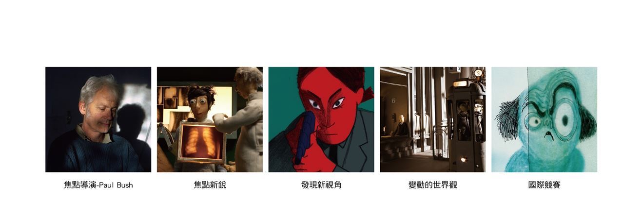 焦點導演:影像頑童保羅布希 | 焦點新銳:新女力爆發 | 變動的世界觀:城市密碼 |發現新視角:真實再現 | 國際短片競賽