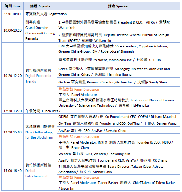 數位經濟新趨勢X區塊鏈應用新爆發X數位娛樂新體驗X亞洲新零售X AI 人工智慧X 數位行銷新策略