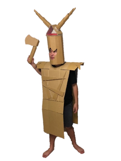 - 上半身需被紙箱包覆,頭戴紙箱頭盔