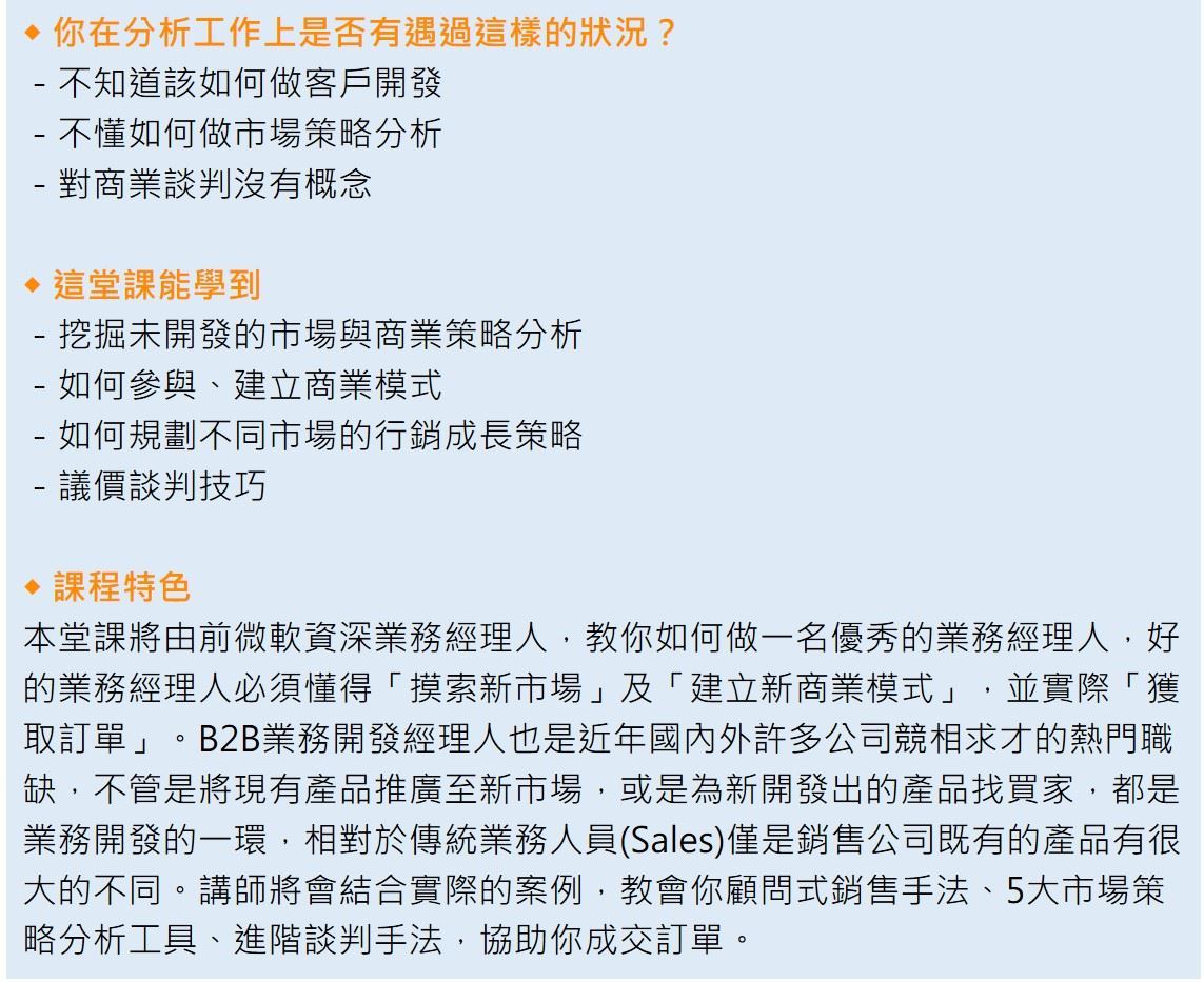 未來職場的必修技能-【B2B業務開發經理人培訓班】