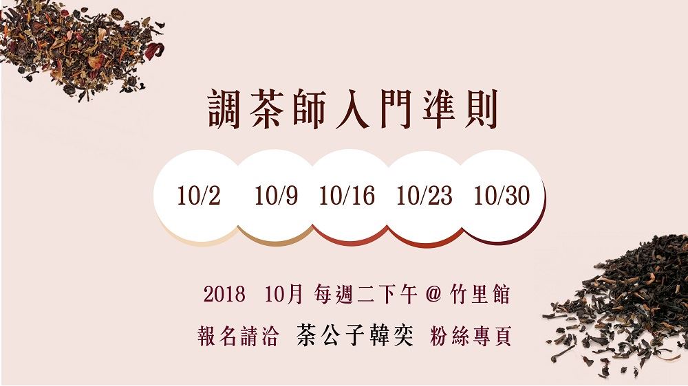 ※ 本系列調茶師課程,由九月連開至十一月,預計12堂課。