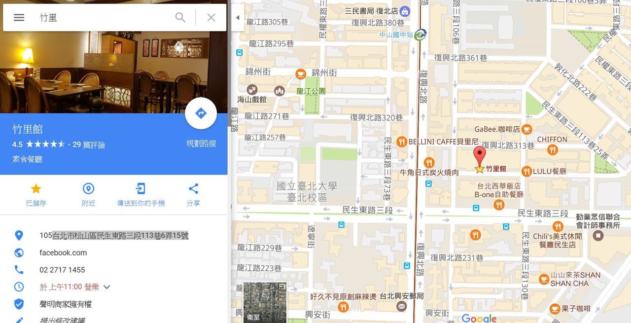 地點|台北市松山區民生東路三段113巷6弄15號 (竹里館)