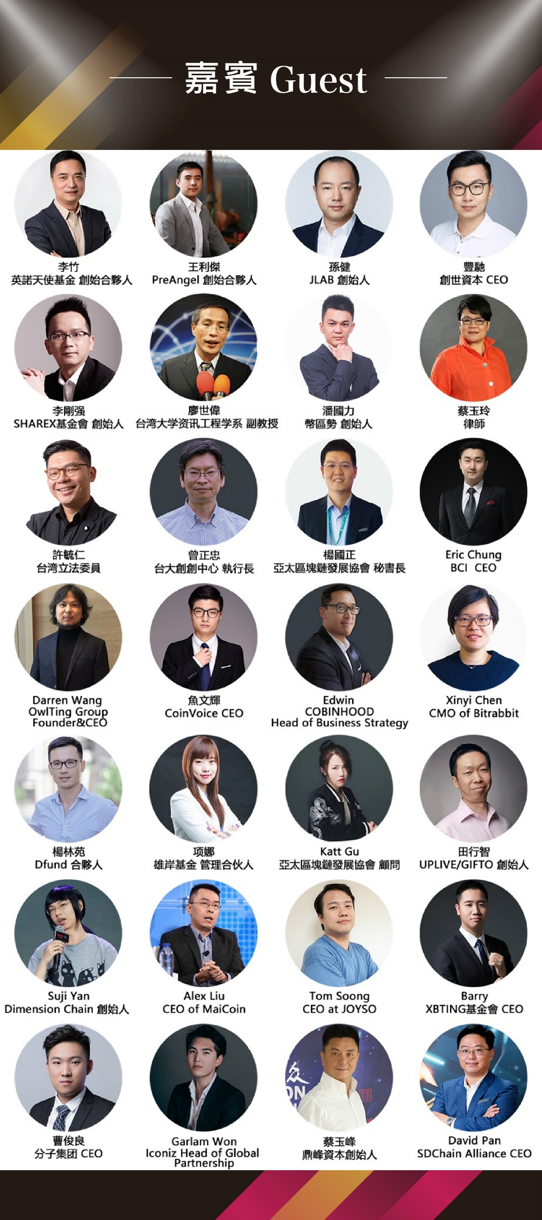 『CoinVoice 2018 Blockchain Innovation Summit』峰會匯聚了全球20多個國家及城市的區塊鏈創新領域精英與專業人士。邀請英諾天使基金創始合夥人李竹、PreAngel創始合夥人王利傑、JLAB創始人孫建、創世資本 CEO豐馳、SHAREX基金會創始人李剛強、台灣立委許毓仁、幣區勢創始人潘國力、XBTIG基金會 CEO Barry、分子集團 CEO 曹俊良、Dfund合夥人楊林苑等眾多區塊鏈關鍵人士出席峰會,共同探討區塊鏈未來發展方向。
