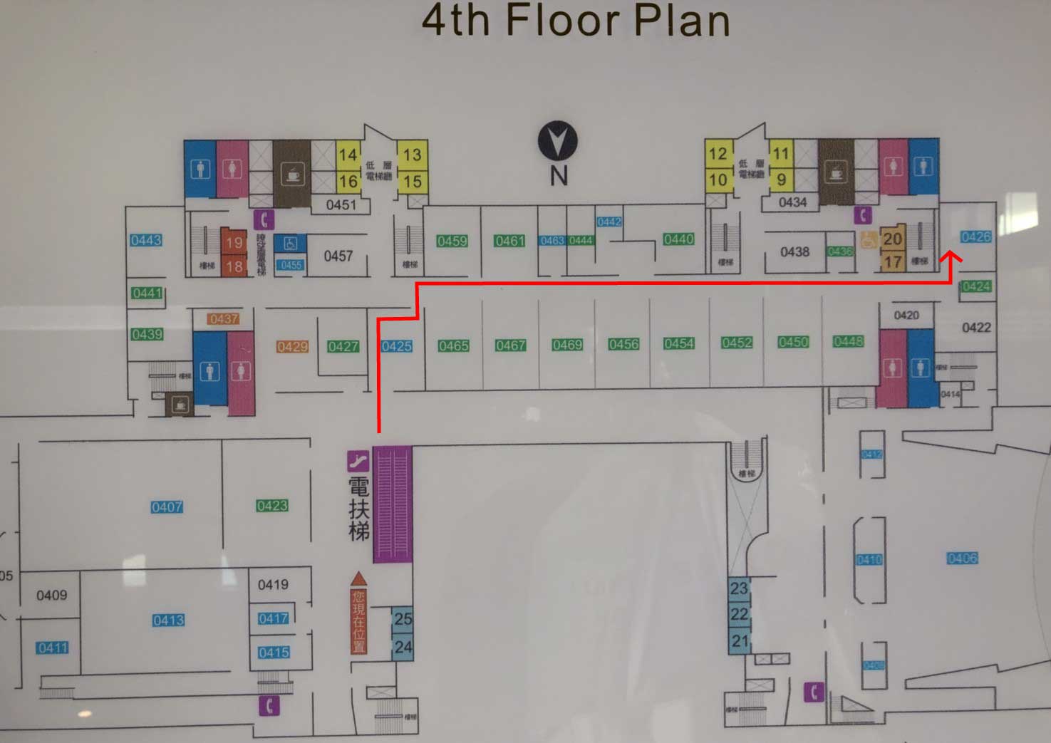 - 路線指南:新北市政府大廳搭乘電扶梯至四樓,需穿越市府辦公室即可看到426教室。