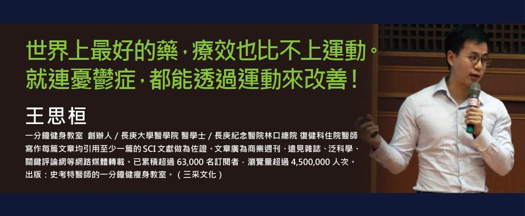 創辦一分鐘健身教室的復健科醫師 王思恒→讓深入淺出的圖解和數字證據,打破陳年的運動成見,用科學化數據讓你理解自己的身體狀況,輕鬆分辨什麼是對的,什麼才是錯的!不在瞎練。