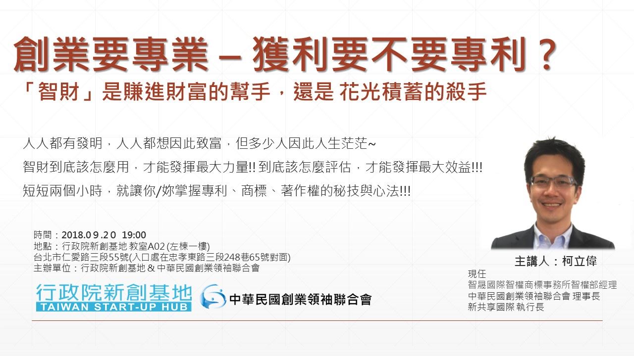 來吧! 短短兩個小時,就讓你/妳掌握專利、商標、著作權的秘技與心法!!! 講師柯立偉在業界已有15年以上的經驗,除了事務所外,亦在著名的專利併購公司擔任要職,充份了解商場上的專利商標戰,小蝦米如何在變成龍蝦前,可以吸引投資人注資以安穩長大,長大後又有足夠大的尖螫可以保護地盤與擴充地盤,這一切都是會在這兩小時中分享給各位~~