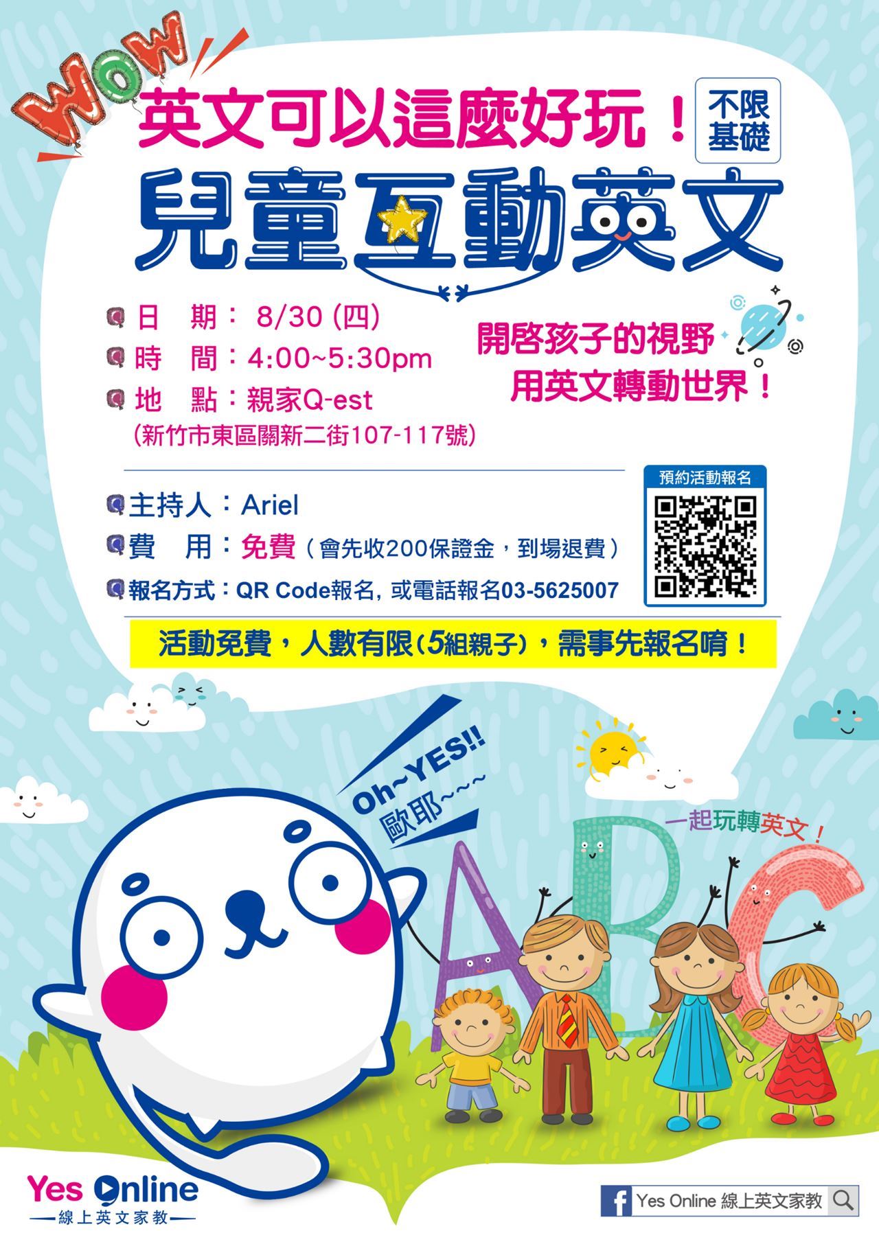 活動免費,邀請親子一同參加,此活動場限定5組親子參與,須事先報名📝!小朋友不限英文基礎都可以參加🆗