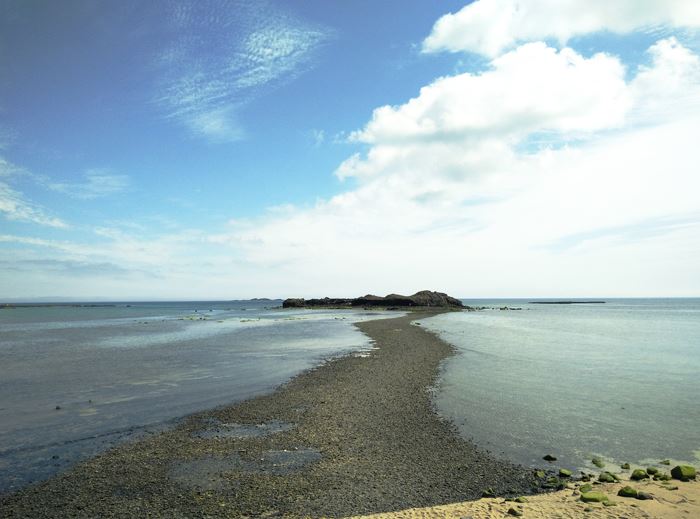 其漲潮時為一獨立小島,退潮時會露出長約350公尺、寬約50公尺的玄武岩礫石小徑