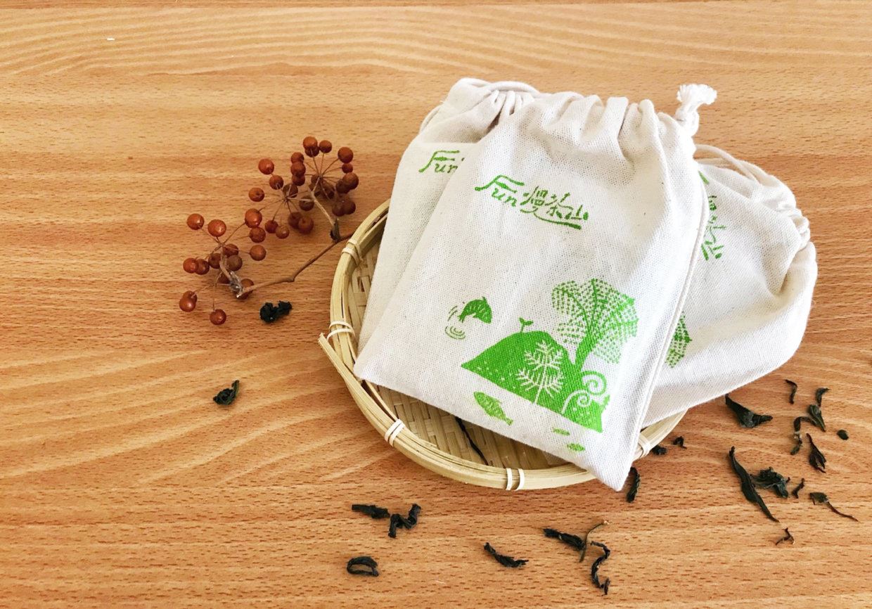 由我們嚴選坪林、石碇好茶茶包,放進小包裡。期待旅人將一整日的快樂放進袋子裡帶回家。小包裡的茶,如袋上的快樂小魚,跳出水面的可愛模樣,期望您在品嚐袋中好茶時,心情永遠快樂。