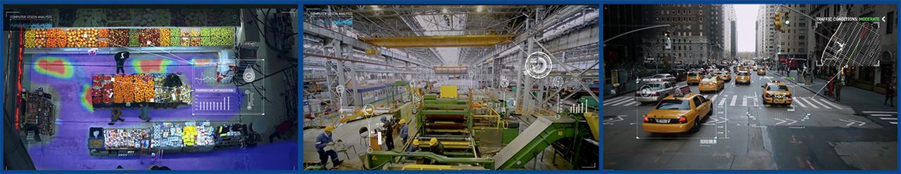 AI視覺應用幾乎涵蓋物聯網各層面,像是辨識生產線產品瑕疵、零售業庫存管理、遠端判斷設備維修需求、以及城市與機場的公共安全。這些案例都使用高解析攝影機,產生龐大數據量,並且須加以匯整與分析。其他使用場景包括 VR 產品和機器人技術、智能家居、工業攝影鏡頭、AI 攝影鏡頭,還有監控和安保。
