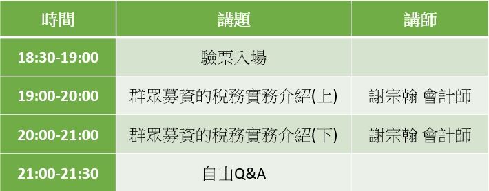 所以,為了新創團隊可以了解實務層面上如何做到開源節流,這次講座邀請到益誠聯合會計師事務所所長-謝宗翰 會計師來分享群眾募資世界內的稅務重點,事先作好規劃才不會讓募資計畫成功卻樂極生悲。