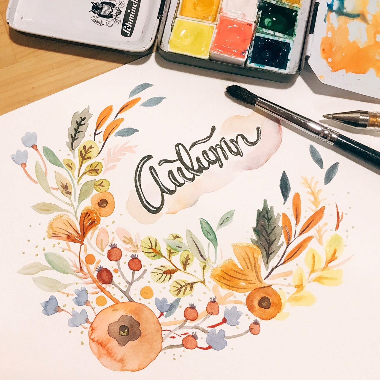 課程水彩速寫議題:內有2018冬季經典配色、秋日果實、銀杏、落葉、柿子...& 文字設計