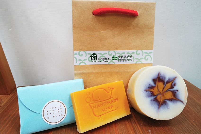 體驗課程當天可以用優惠價購買愛盲土城工坊現有的手工皂商品,也可用$70元加購惜福皂袋,現場自行裝滿皂邊,收穫滿滿的帶回家。(只限活動當天)