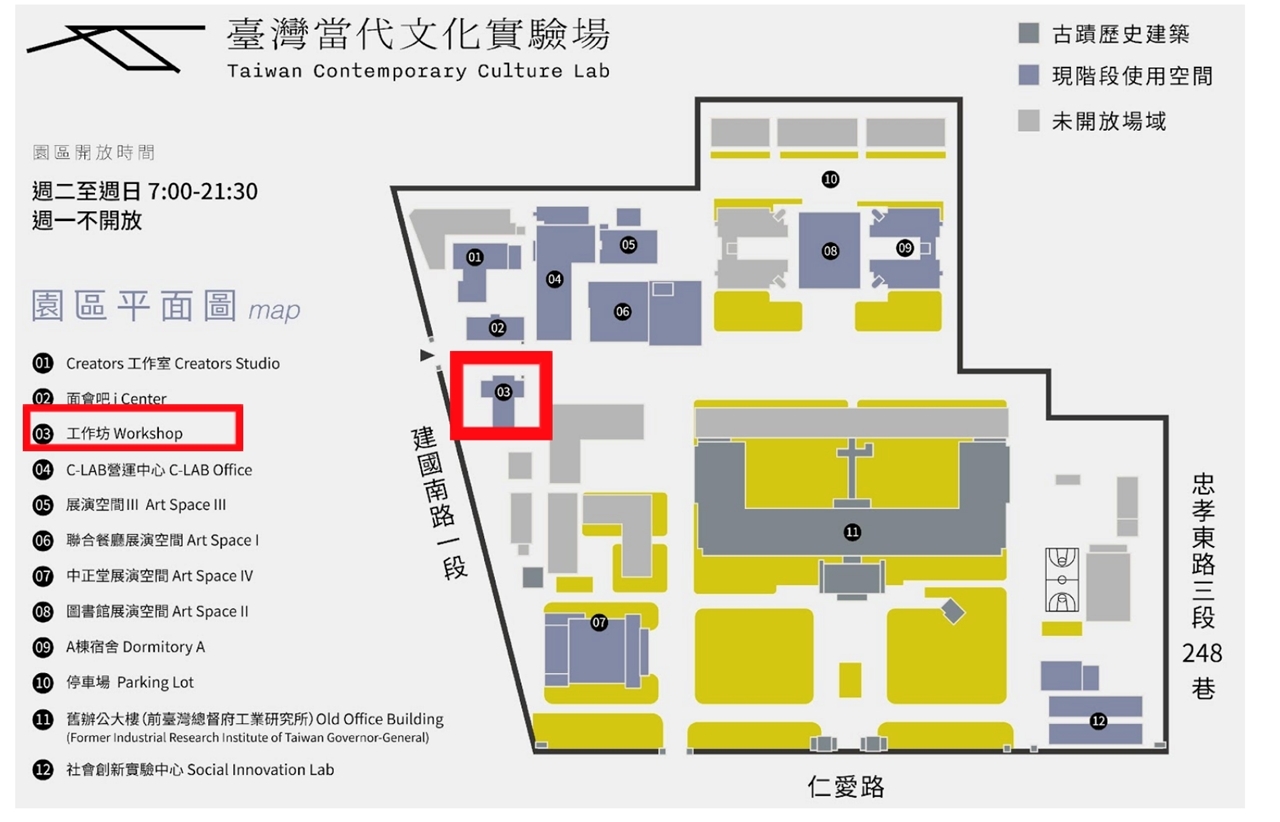 活動場地:臺灣當代文化實驗場c-lab 工作坊(臺北市大安區建國南路一段177號)