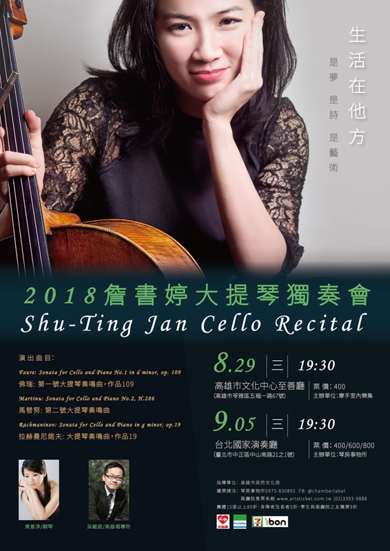 留德大提琴演奏家詹書婷,在國外吸收豐富的藝術文化涵養,累積豐富的演奏經驗,並多次獲得國際比賽大獎。2018年所演出的獨奏會,帶來意義深刻、饒富詩意,同時兼具通俗與罕見的選曲:三位晚期浪漫作曲家-佛瑞(法國)、馬替努(捷克)、拉赫曼尼諾夫(俄國)的大提琴奏鳴曲,充滿高度的情感張力,以及矛盾與協合。其中馬替努以及拉赫曼尼諾夫,在音樂生涯中離開了自己的故鄉,前往美國及其他國家發展。在他方寫下的作品,除了具高度的藝術性,更充滿新舊文化的衝擊。