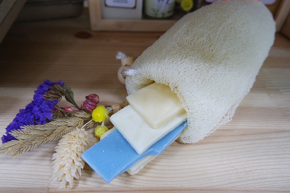 愛盲的手工皂不添加防腐劑與介面活性劑,只用植物精油與礦草粉賦香著色,56天自然晾皂熟成,帶給您天然潔淨無負擔。