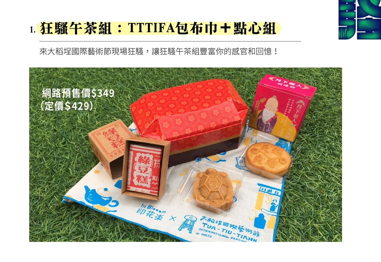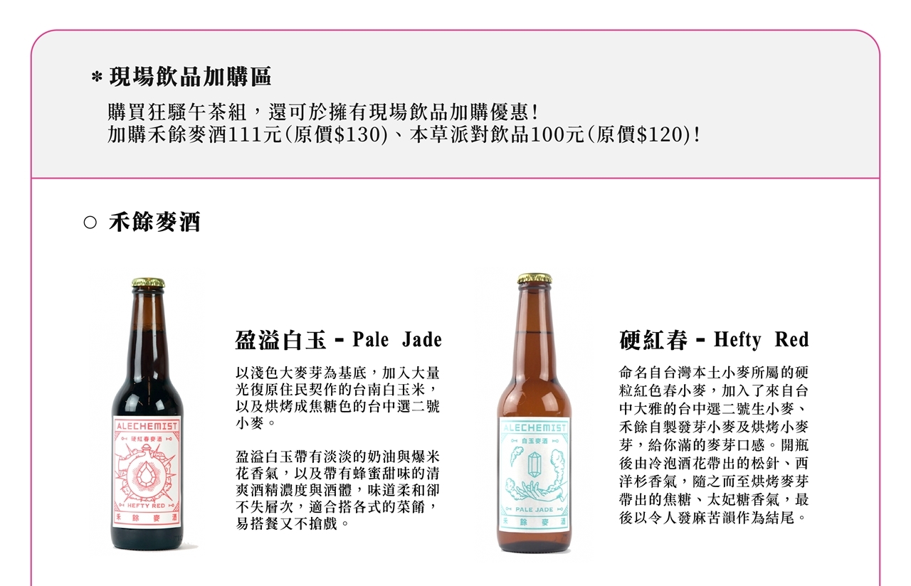 狂騷午茶組、印花樂聯名TTTIFA包布巾、禾餘麥酒、本草派對飲品