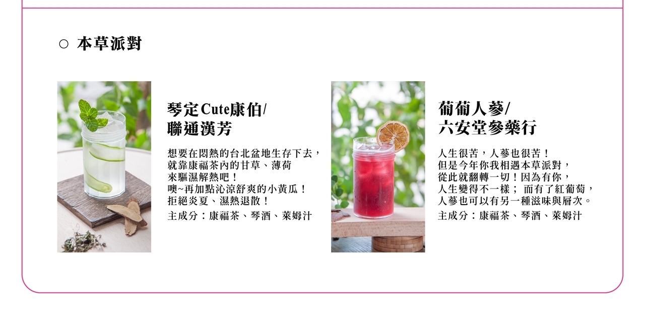 *本草派對飲品以現場供應為準,品項僅供參考