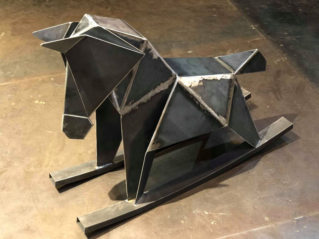 許廷瑞以「鐵」為元素製作成以「木馬」為形式的「鐵馬」,結合了當地的元素為線索,讓鐵馬屹立在人潮來往頻繁的中山線形公園R79段。一大兩小的鐵馬不只能看,也可以親身騎上馬背,彷彿乘上回溯童年的時光機,透過鐵馬搖晃,晃回到兒時單純、充滿童趣的時光。