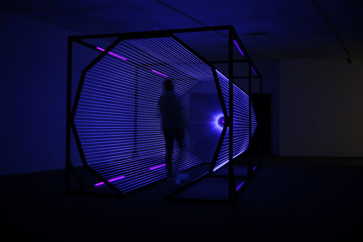 Black Widow展現了科技陷阱的概念,由固定在中心點的編織羊毛線組成網,代表漏斗狀的蜘蛛網。邊緣上放置霓虹燈,在漏斗狀蜘蛛網的中心,散發出黑光的燈泡就像守株待兔的黑寡婦隨時等待捕捉時機,對於生命有限的人造環境,Black Widow給人們在過度消費社會中,所出現的「程序性淘汰現象」有了進一步反思的空間。
