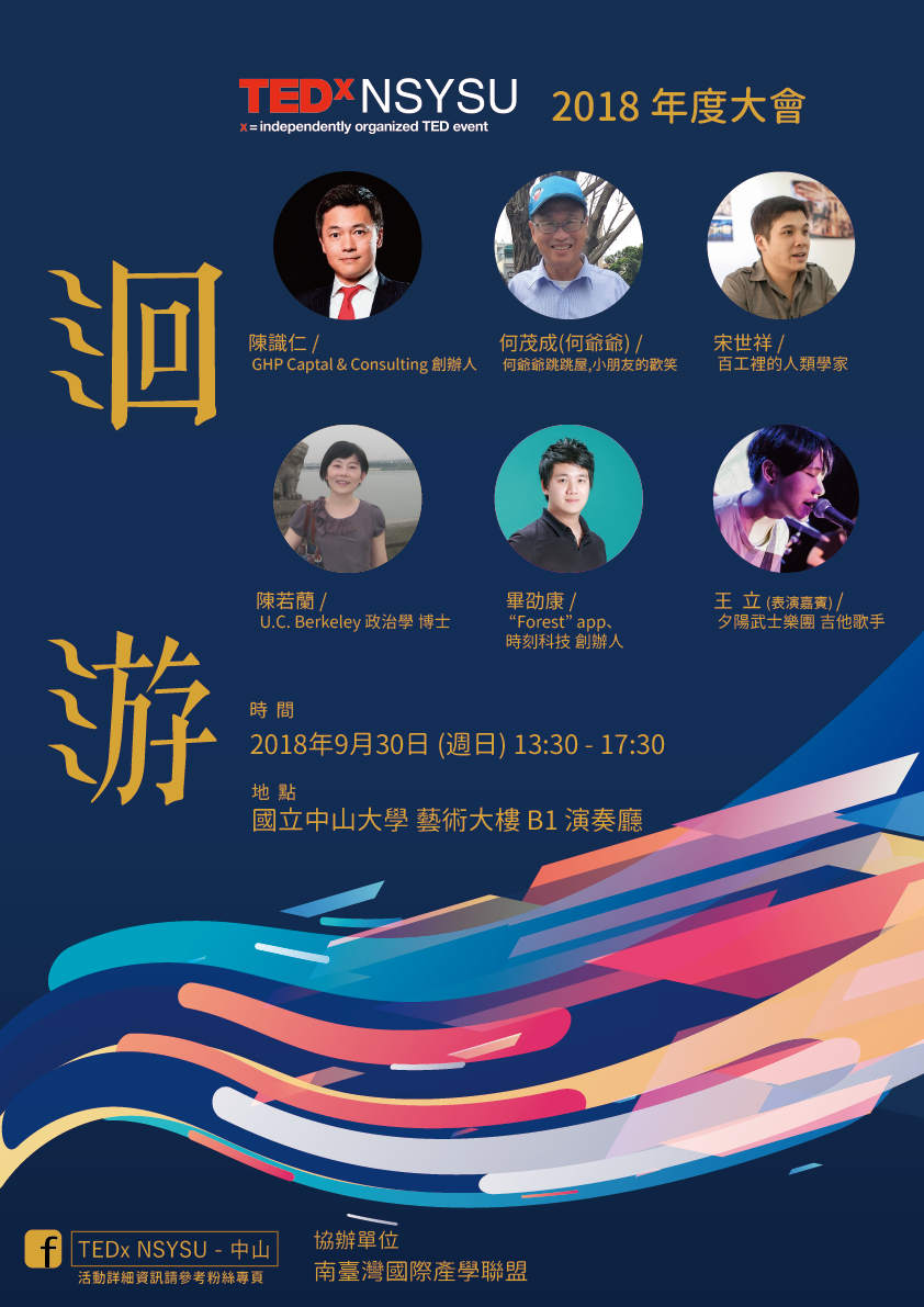 【TEDxNSYSU 2018 「洄游」年會・講者陣容】