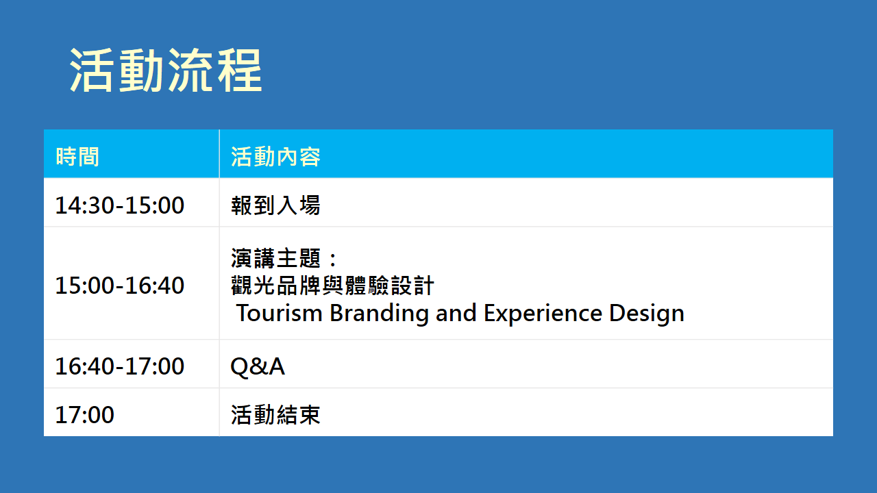 觀光品牌與體驗設計講座 Tourism Branding and Experience Design