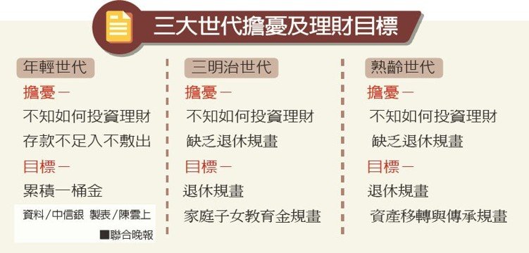 根據統計,台灣三大世代都有不知如何投資理財的擔憂