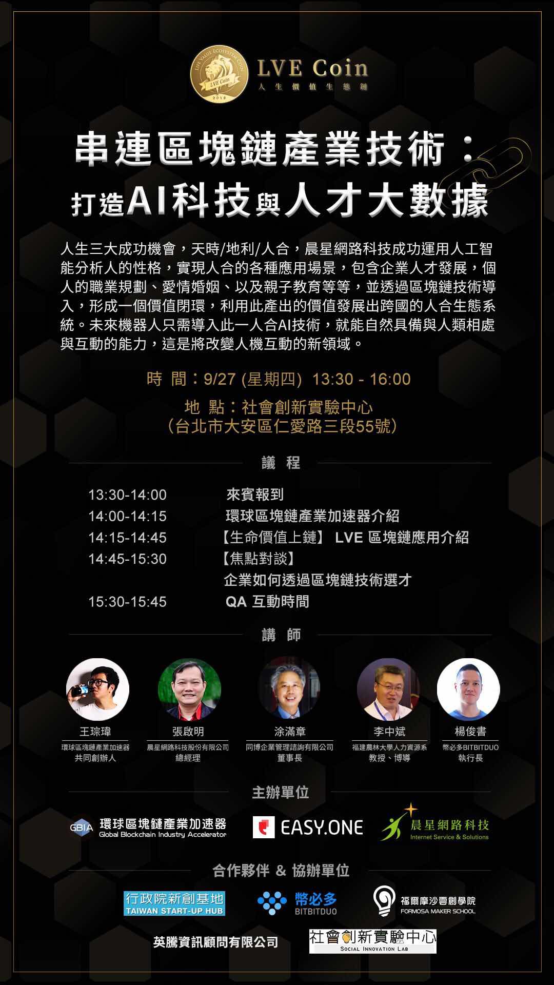 9/27 串連區塊鏈產業技術:打造AI科技與人才大數據
