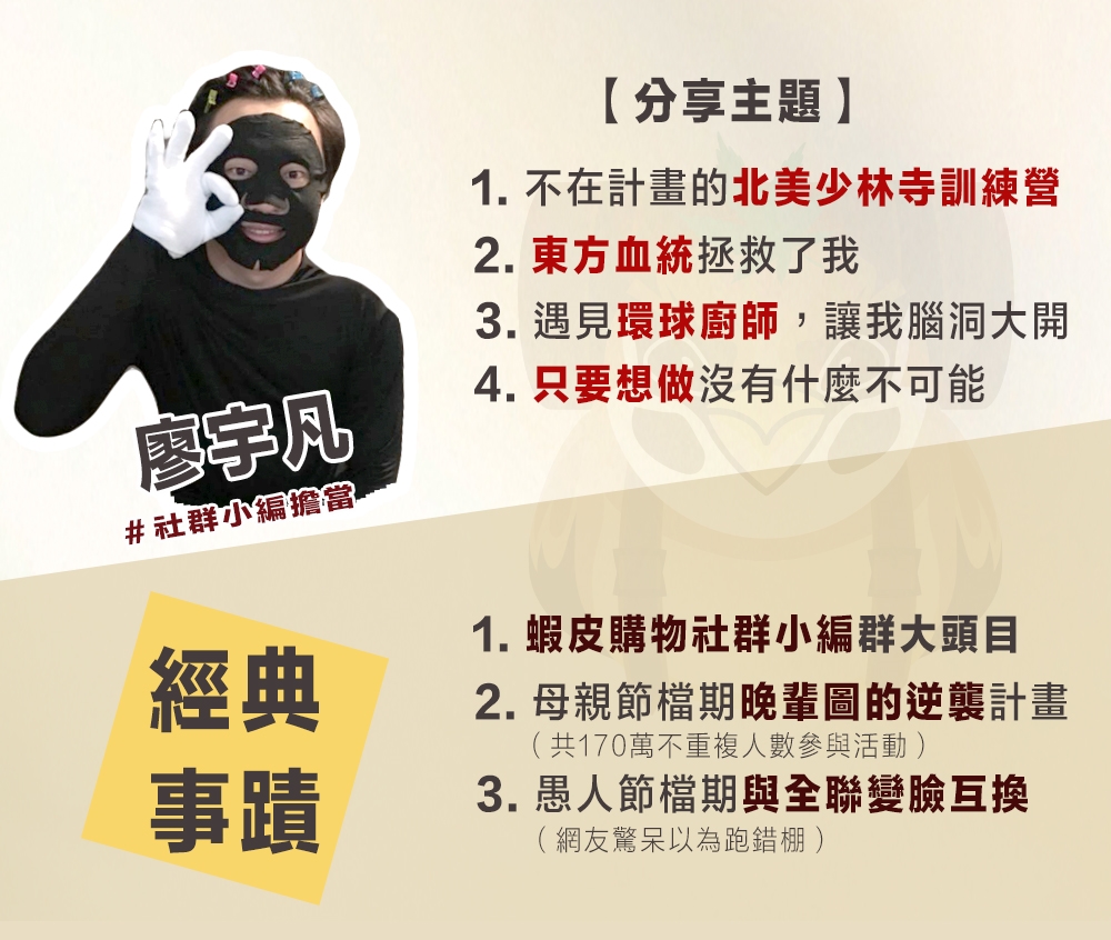 明明是理工科畢業,卻一路走歪轉變成十項全能還得兼陪笑救火的蝦皮社群小編。小編這事有多難當,拜託G神一搜就知道,這麼苦的工作竟然還能當遊戲在做?每年蝦皮99超級購物節一展開,便是超商店員的噩夢日,蝦皮小編一出手,就是要癱瘓所有超商物流系統。這麼多的梗到底從何而來,那趟旅行給的衝擊又是如何影響至今?一場說走就走的美國打工度假,巧遇環球的美食廚師,原來生命裡的可能比你想像中還要多更多更多。