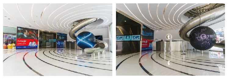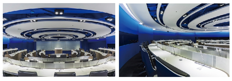 環境設備:55個席位、投影機/白板、無線手持麥克風、Mini麥克風、TMX全球智能講堂平堂、巨大弧形LED屏幕