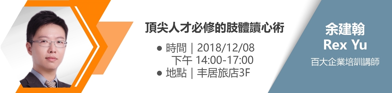 【課堂十一】 2018/12/08 (六) 14:00-17:00|「頂尖人才必修的肢體讀心術」