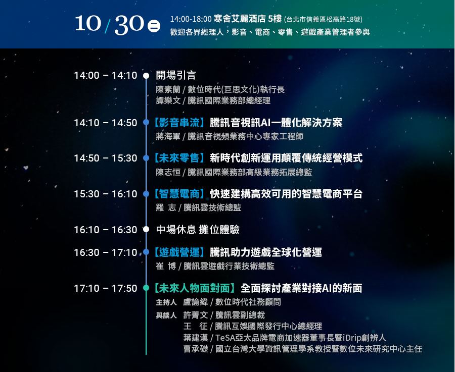 更多詳細資訊 → 活動官網 : https://edm.bnext.com.tw/tencent2018活動洽詢:(02)8773-9808 #258張先生 #255盧小姐( 主辦單位保留最後議程調整之權利。)