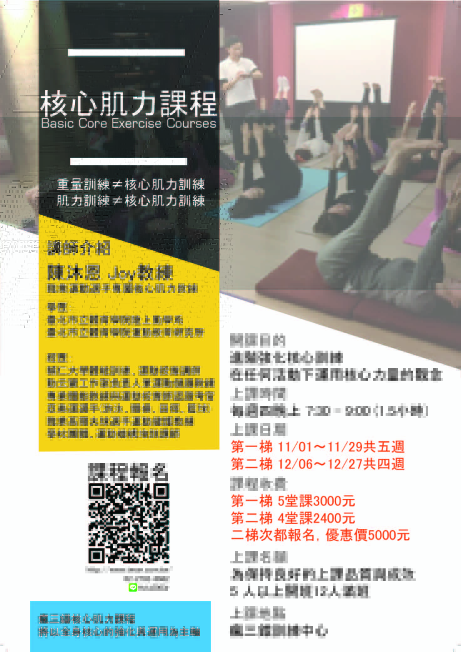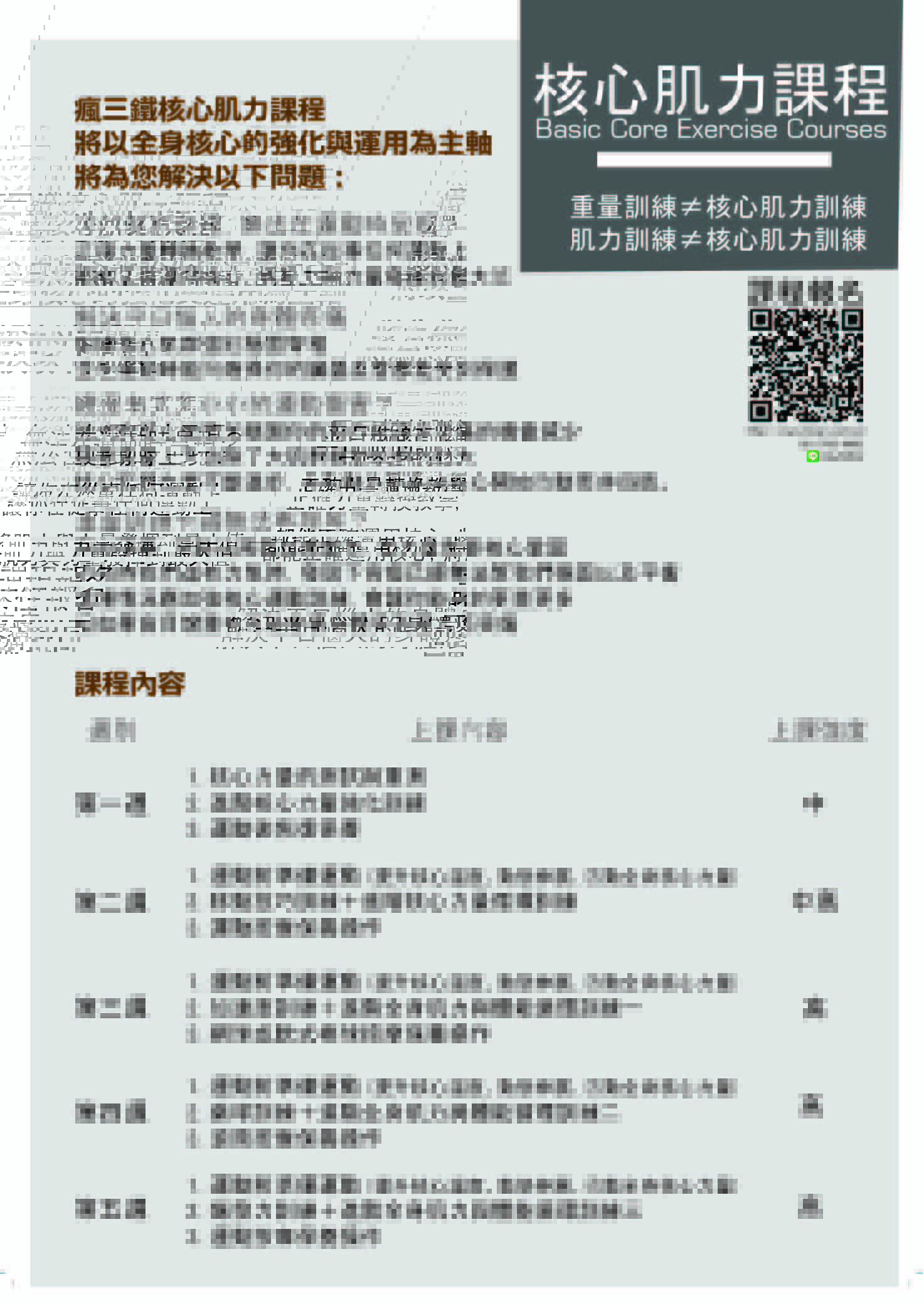 一、開課目的:進階強化核心訓練與在任何活動下運用核心力量的觀念。