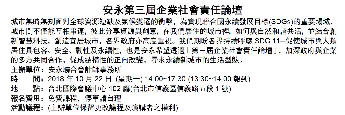 2018.10.22 (Mon) 13:30 - 17:30 (GMT+8)