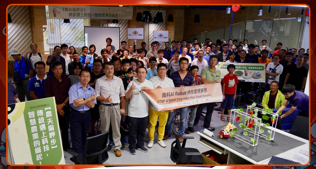 南科AI_ROBOT自造基地今年推動六大主題社群,包含:智慧醫療、AIoT/AR/VR、智慧農業、無人載具、智慧機械/機器人、智慧演算/Fintech,除透過每個月持續透過聚會、論壇等形式滾動,年底的更透過六場驚人的社群開講,曝光出關於居家醫療、智慧農業採果機器人、追逐颱風無人機計畫、不為人知的ROS機器人專案、以及Maker如何加入大數據採集行列的進度。南科AI_ROBOT自造基地除了提供場域設備之外,社群的力量更是推動基地前進的重要關鍵!