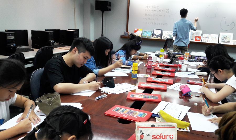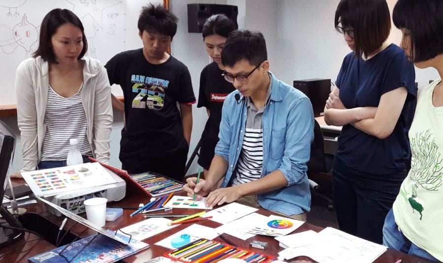 課程以三種媒材 ( 水性色鉛筆、油性粉彩、水性蠟筆 ) 複合技法與風格的創作,引導同學利用想像力塗鴉和創意思考的方式完成繪本,詳盡的技法步驟練習,以及老師的課堂示範,讓學員迅速分辨媒材的差異與特性,運用在作品上,發揮最顯著效果。