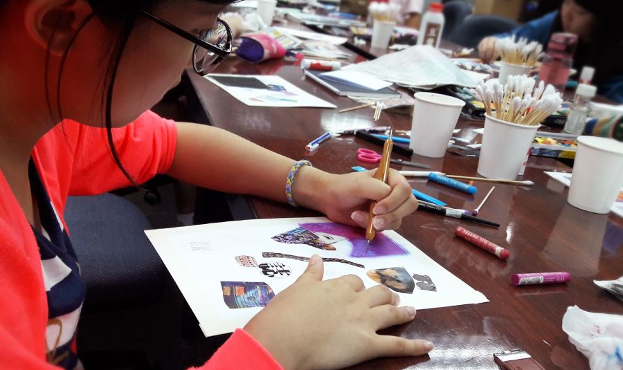 拓印與雜誌拼貼的合成特效,製作超現實作品、個別指導繪本。