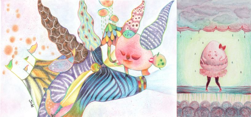 3.『複合技法』色鉛筆、水蠟綜合風。