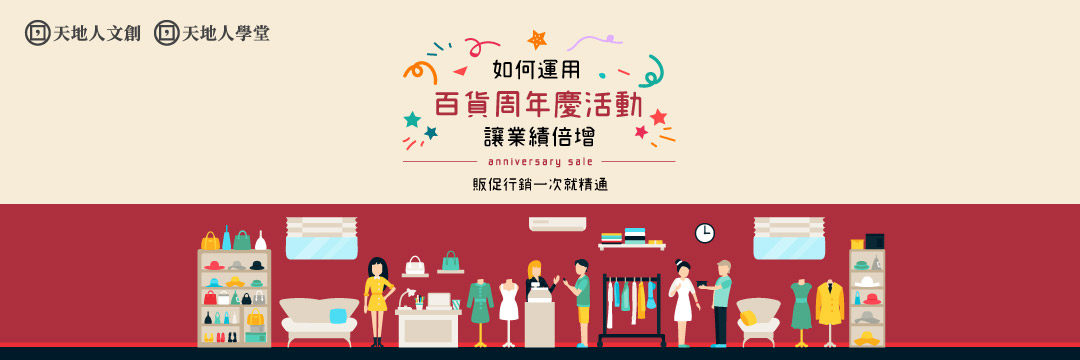 名稱:天地人學堂:如何運用百貨周年慶活動讓業績倍增?販促行銷一次就精通