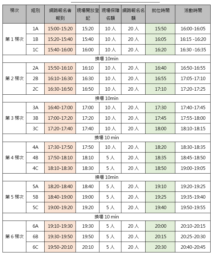 ※備註:現場報名梯次需視當天報名狀況,每一梯次人數額滿為止。