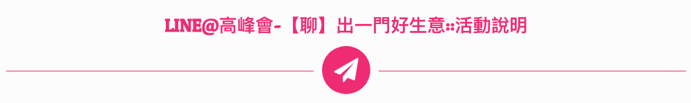 2018LINE@高峰會-[聊]出一門好生意,將帶你了解如何更有效地透過LINE、LINE@跟客戶建立關係,聊出訂單,活動中將分享許多LINE@電商、零售經營案例,從實務當中學習經驗,省掉許多摸索、失敗的時間,讓你在2019即將到來之際,領先掌握「聊天經濟」(對話式經濟)的趨勢與商機,提前做好來年的行銷規劃,搶得訂單!