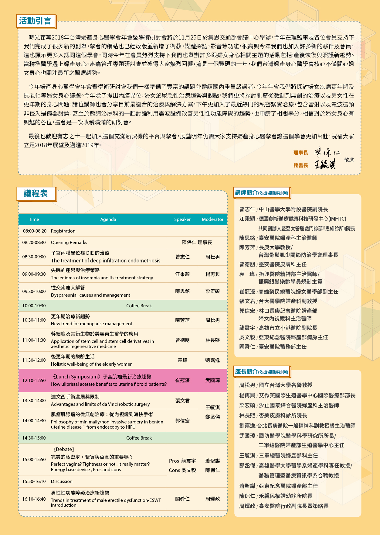 台灣婦產身心醫學會 11月25日【2018年會暨第2次學術研討會】